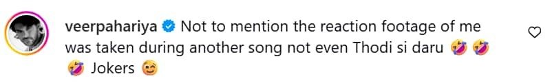 तारा की इस पोस्ट पर बॉयफ्रेंड वीर पहाड़िया ने भी कमेंट कर वायरल दावों को खारिज किया। उन्होंने लिखा कि उनका रिएक्शन वीडियो किसी और गाने के दौरान रिकॉर्ड किया गया था और उसे गलत तरीके से जोड़कर पेश किया गया। वीर का यह कमेंट सोशल मीडिया पर तेजी से वायरल हो रहा है।
