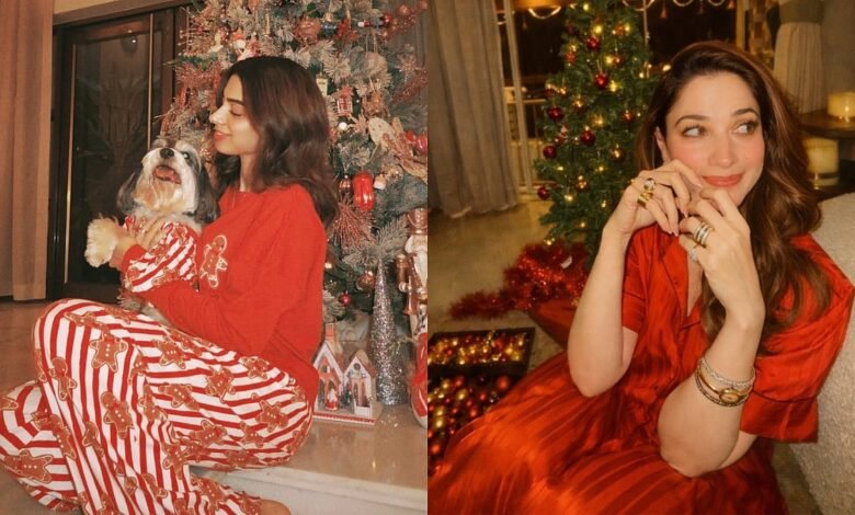 рддрдордиреНрдирд╛ рднрд╛рдЯрд┐рдпрд╛ рдиреЗ рдХреНрд░рд┐рд╕рдорд╕ 2025 рдХреЛ рдкреВрд░реА рддрд░рд╣ рд╣реЛрдо-рд╕реНрдЯрд╛рдЗрд▓ рдФрд░ рдХрдВрдлрд░реНрдЯ рдореЛрдб рдореЗрдВ рдордирд╛рдпрд╛ред рдЙрдиреНрд╣реЛрдВрдиреЗ рд╕рд┐рд▓реНрдХреА рд░реЗрдб рдкрдЬрд╛рдорд╛ рд╕реЗрдЯ рдкрд╣рдирдХрд░ рдХреНрд░рд┐рд╕рдорд╕ рдЯреНрд░реА рдХреЗ рдкрд╛рд╕ рдкреЛрдЬрд╝ рджрд┐рдПред