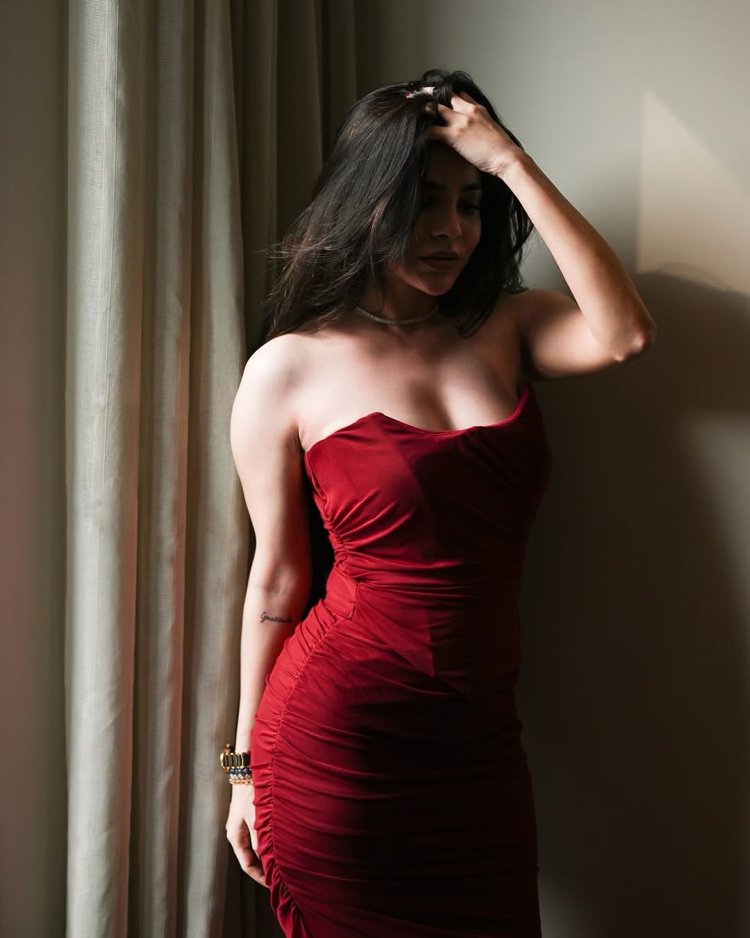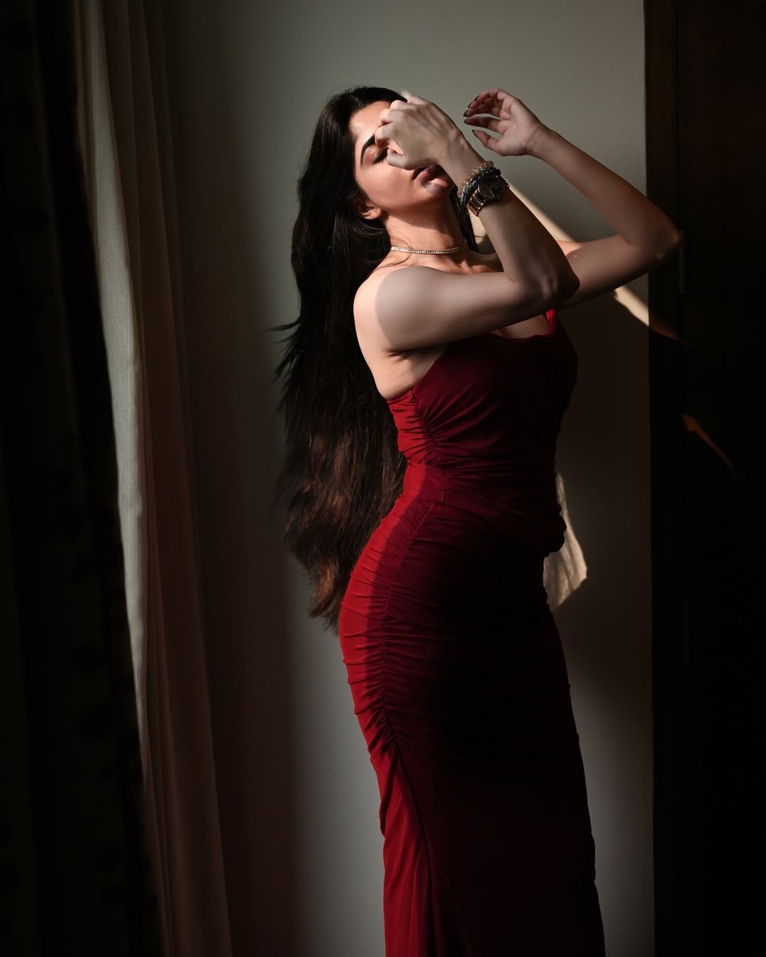 हाल ही में सामने आई उनकी ग्लैमरस फोटो सीरीज सोशल मीडिया पर तेजी से वायरल हो रही है। इस सीरीज में दिव्या को लाल रंग की स्ट्रैपलेस गाउन में देखा जा सकता है, जहां वह सूरज की रोशनी से सजी खिड़की के पास बेहद प्रभावशाली अंदाज़ में पोज़ देती नजर आ रही हैं। इन तस्वीरों के साथ लिखा गया कैप्शन— “Oh, to be a woman”—नारी शक्ति और आत्मगौरव को खूबसूरती से दर्शाता है। फोटोग्राफर @saicharanthejareddyphotography द्वारा क्लिक की गई ये तस्वीरें दिव्या की एलिगेंस, ग्रेस और आत्मविश्वास को बखूबी उजागर करती हैं।