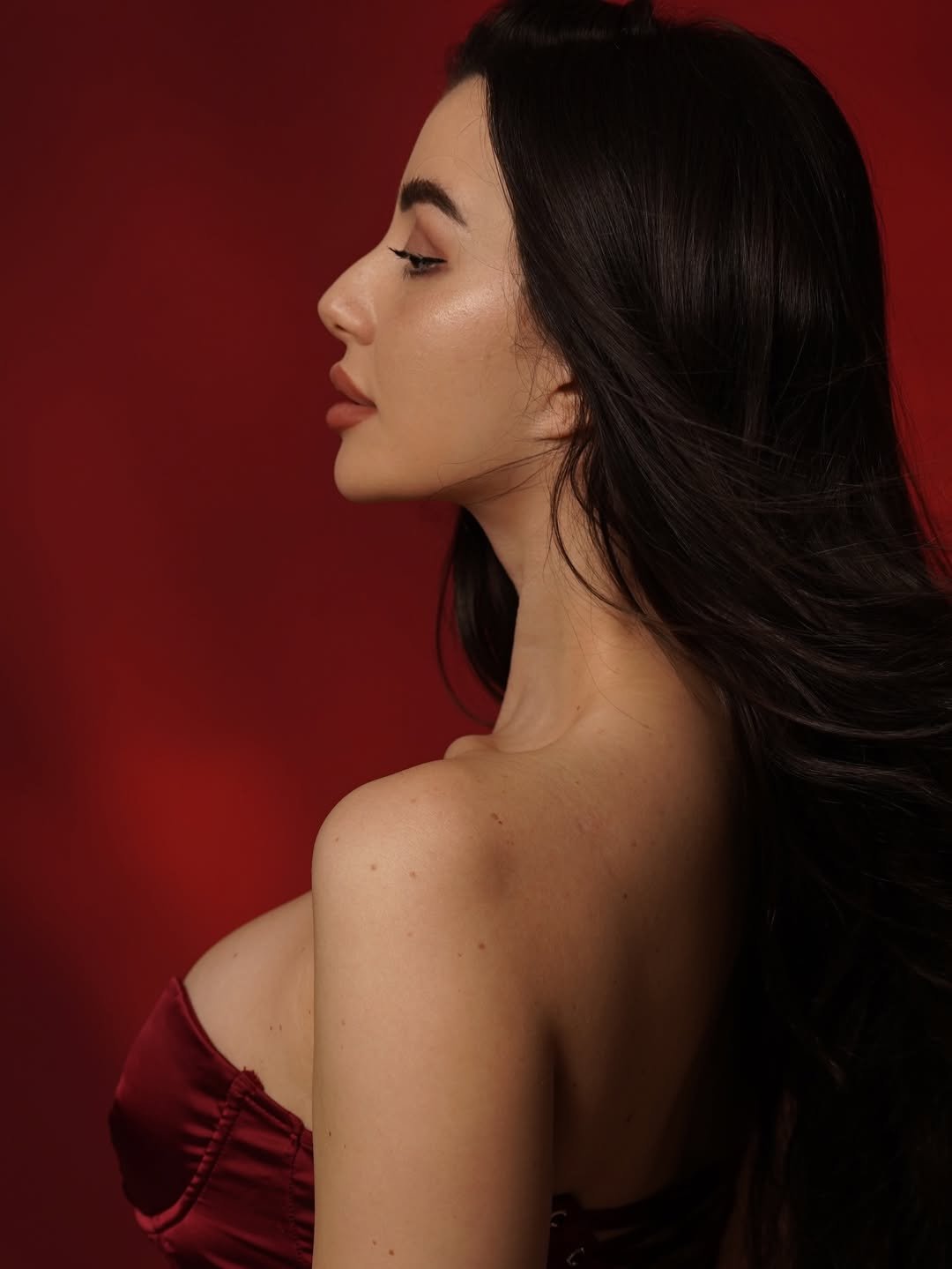 🎄 रेड बैकड्रॉप और सैटिन आउटफिट में दिखा क्रिसमस मैजिक