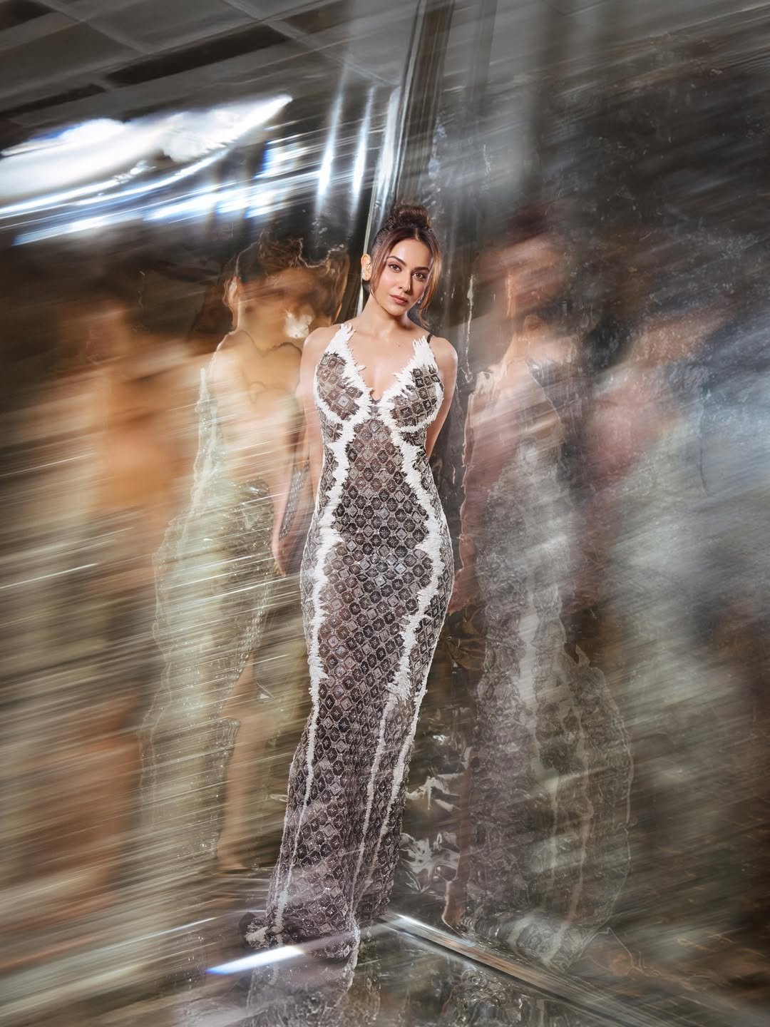 सिक्विन डिजाइन और ट्रांसपेरेंट स्ट्रैप्स के साथ उनका यह आउटफिट उनके फैशन सेंस को शानदार तरीके से हाइलाइट करता है। फैंस का कहना है कि रकुल की हर तस्वीर में उनकी नेचुरल ब्यूटी और ग्लैमर साफ दिखाई देता है।