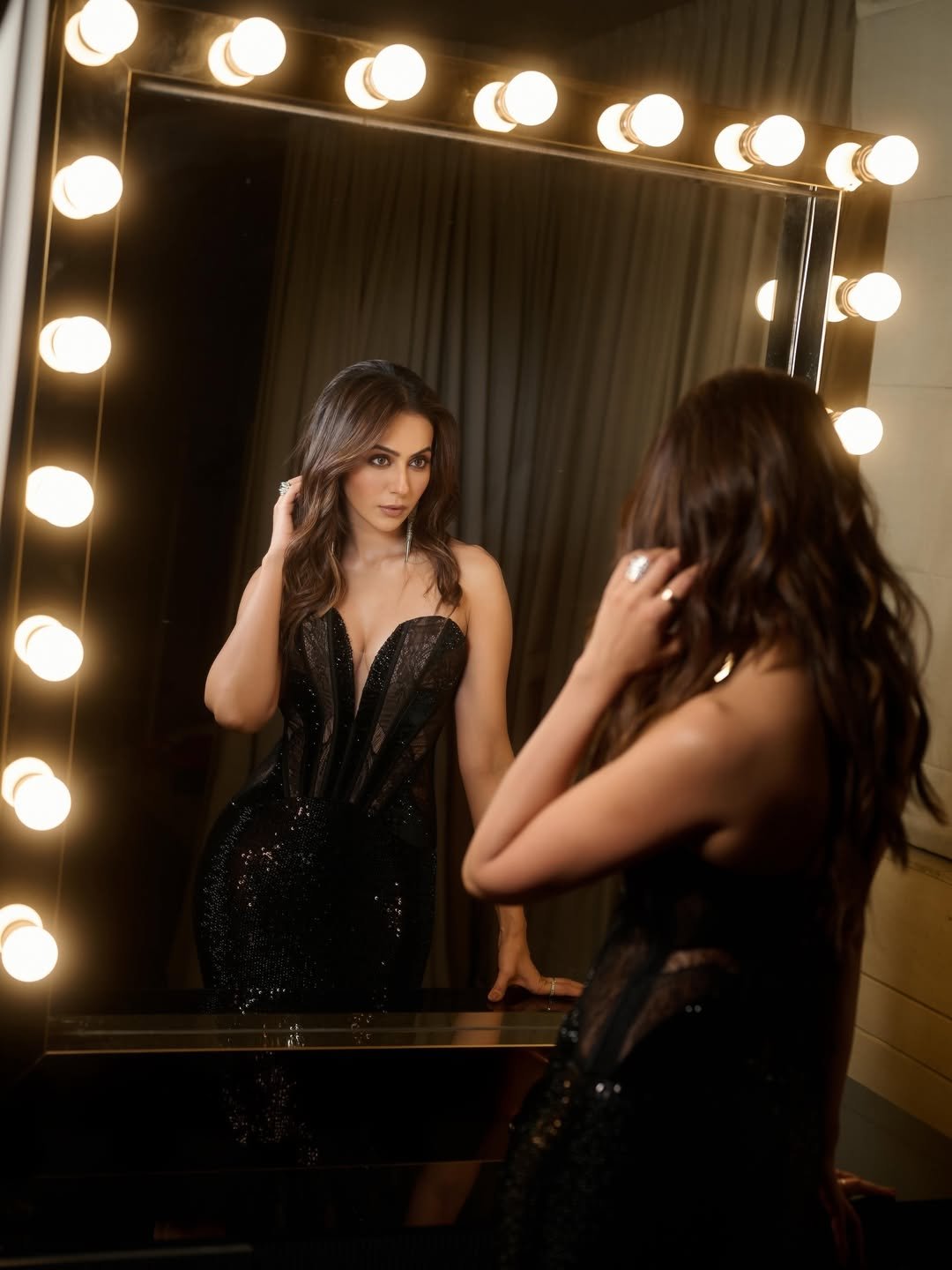 हेयरस्टाइल की बात करें तो रकुल ने अपने बालों को सॉफ्ट कर्ल्स में खुला रखा है, जो उनके लुक में ग्रेस और फेमिनिन टच जोड़ रहे हैं। वहीं एक्सेसरीज के तौर पर उन्होंने सिल्वर ईयररिंग्स कैरी किए हैं, जो ब्लैक ड्रेस के साथ शानदार कॉम्बिनेशन बना रहे हैं। रकुल का यह पूरा लुक फैशन लवर्स के लिए एक परफेक्ट स्टाइल इंस्पिरेशन बन गया है।