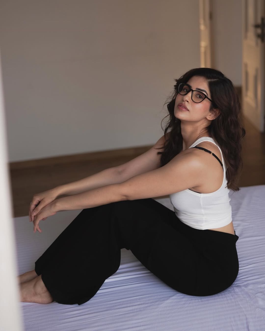 इस वायरल फोटो में साक्षी मलिक बेड पर रिलैक्स करती नजर आ रही हैं। उन्होंने व्हाइट टैंक टॉप पहना है, जिसके अंदर ब्लैक लेस लिंजरी साफ झलक रही है। यह लुक एक तरफ बेहद सिज़लिंग है, तो दूसरी ओर चश्मे के साथ उनका अंदाज़ एक क्यूट और नर्डी टच भी देता है। साक्षी अपने चश्मे को हल्के से एडजस्ट करते हुए कैमरे की ओर देख रही हैं, और उनकी आंखों की शरारत इस तस्वीर को और भी खास बना देती है।