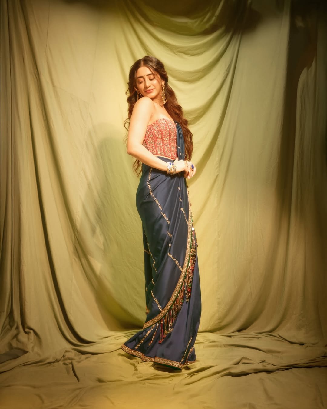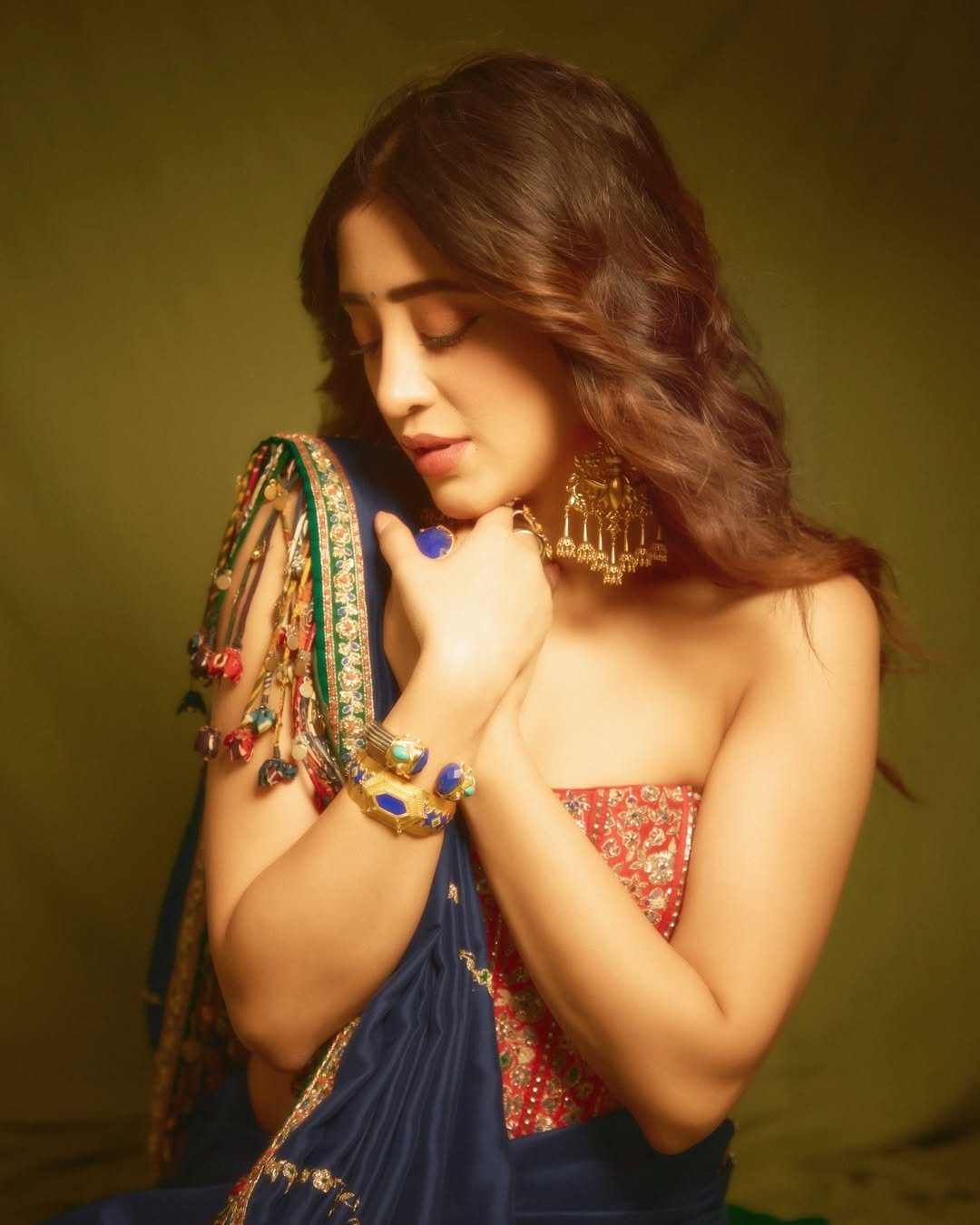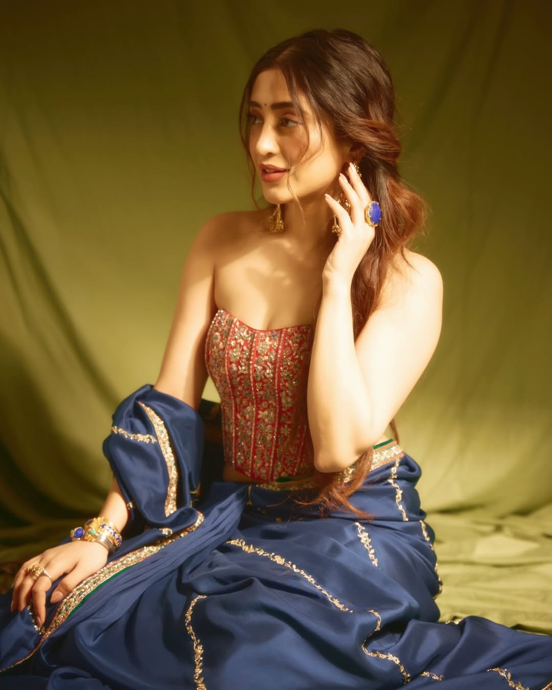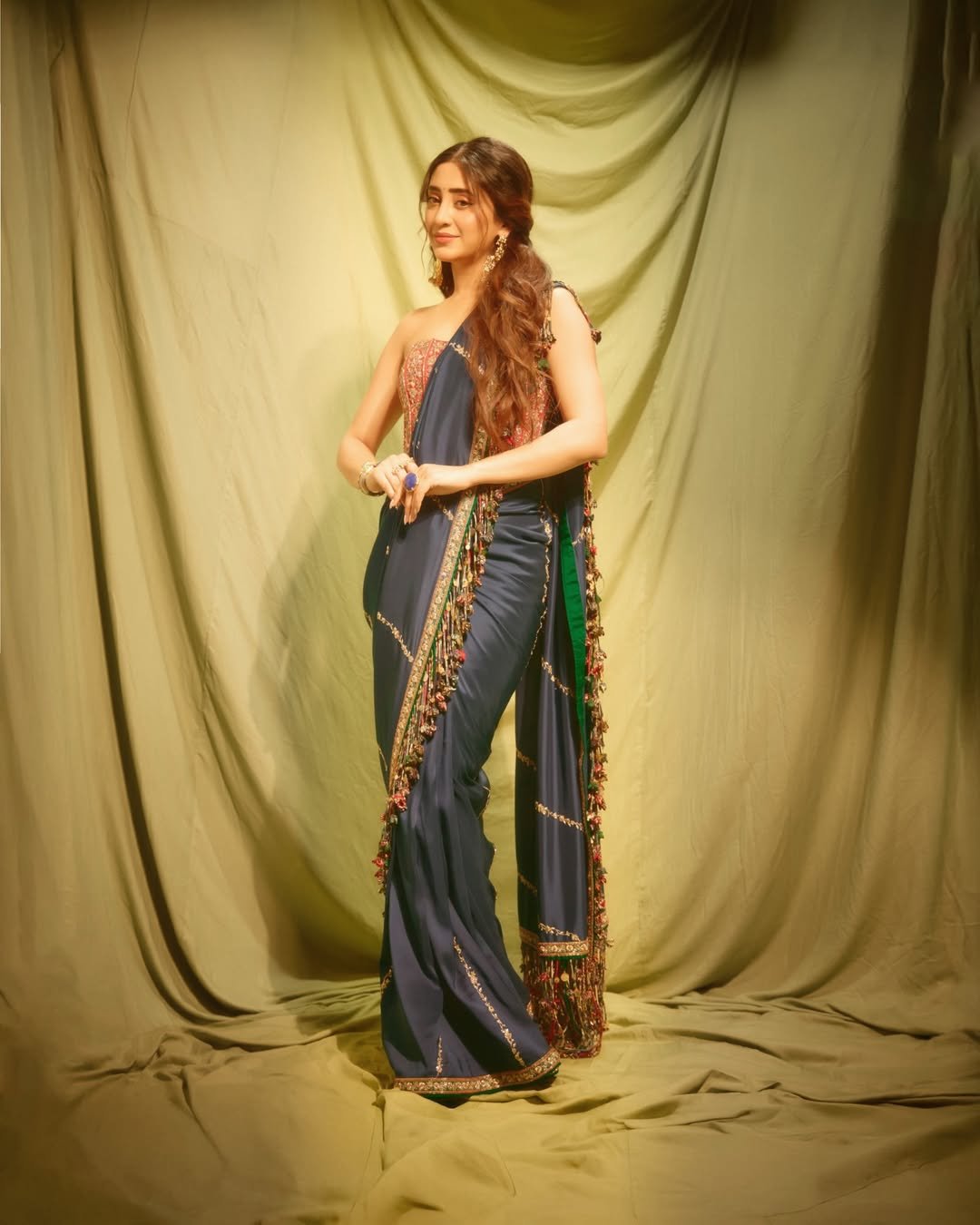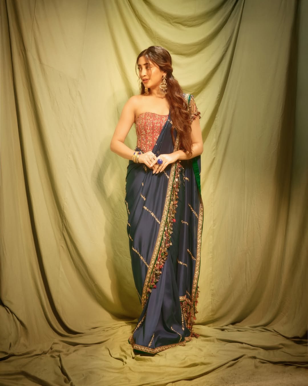 शिवांगी का यह स्टाइलिश साड़ी लुक यह दिखाता है कि कैसे ट्रेडिशनल वियर को मॉडर्न टच के साथ स्टाइल किया जा सकता है। उनके ग्लैमरस और आत्मविश्वासी अंदाज ने एक बार फिर यह साबित कर दिया कि टीवी इंडस्ट्री में उनका कोई मुकाबला नहीं है।
