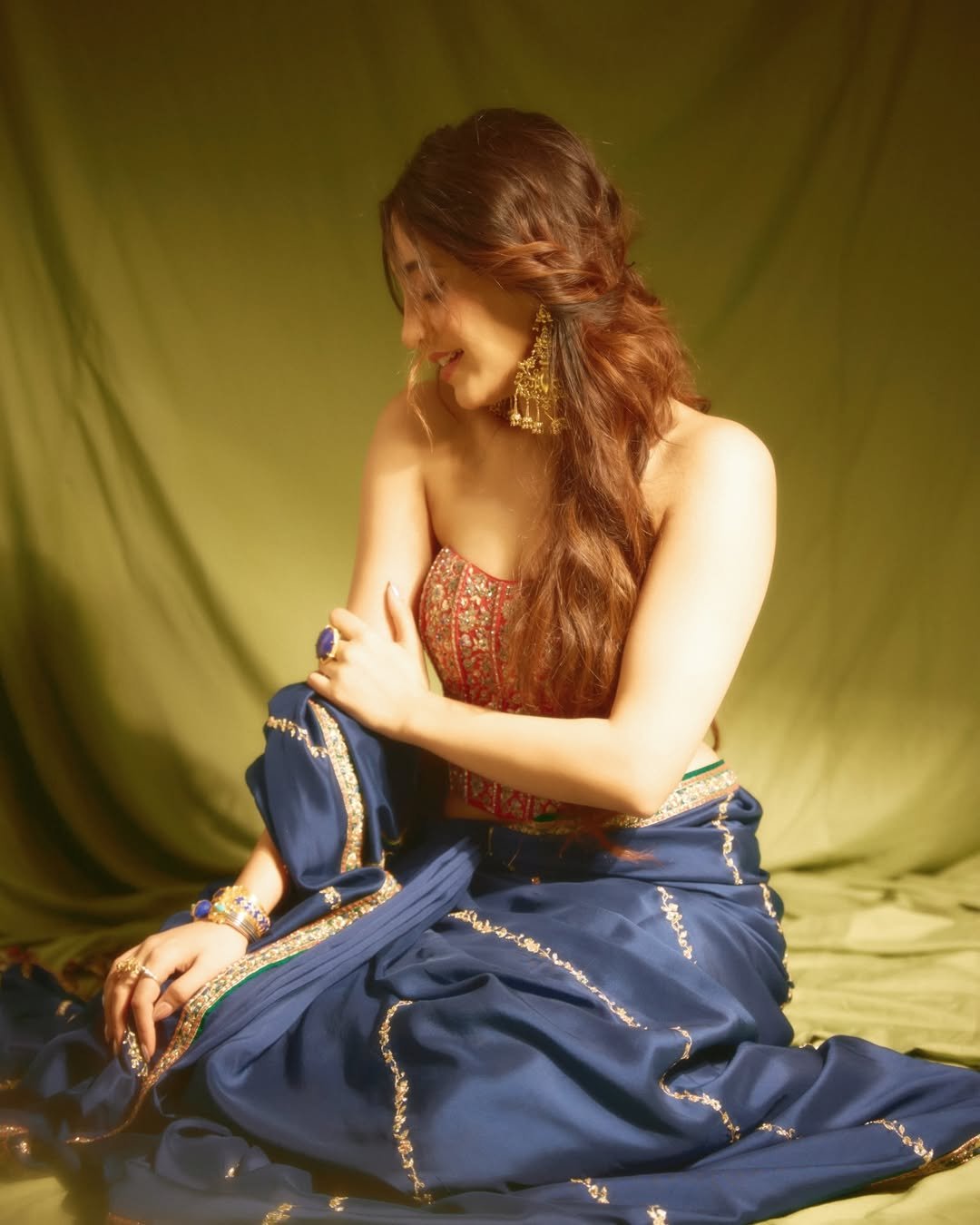 शिवांगी ने अपने लेटेस्ट लुक में ब्लू कलर की साड़ी कैरी की है, जो उनके स्टाइल और ग्लैमर को और भी बढ़ा रही है। इसके साथ उन्होंने स्लीवलेस ब्लाउज पहना है, जिससे उनके लुक में एक मॉडर्न और स्टाइलिश टच नजर आता है। उनका यह अंदाज ट्रेडिशनल और मॉडर्न का परफेक्ट मिश्रण है, जो उन्हें किसी भी अन्य टीवी एक्ट्रेस से अलग बनाता है।